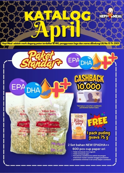 Beranda » Hepi Meal Smart Grow Series » EPADHA++ » 2 SET PAKET STANDAR+ EPA DHA ++ FREE PUDING JERUK 75 GR DAN CASHBACK 10.000 MAR 26
