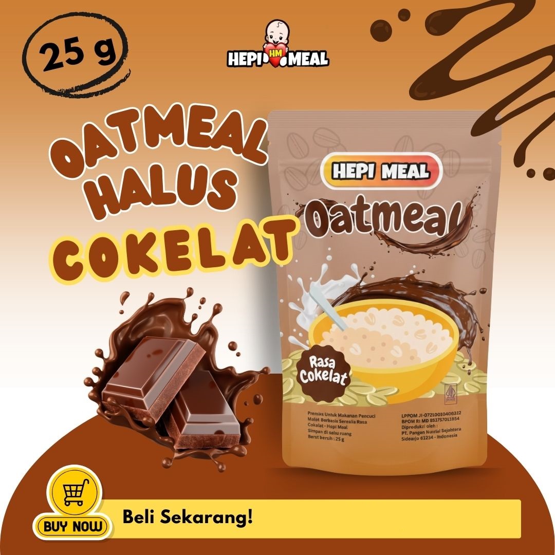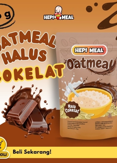 Oatmeal cokelat lembut dari Hepi Meal kini hadir dalam gramasi 25 gram dengan kemasan standing pouch yang praktis, higienis, dan mudah dibawa ke mana saja.